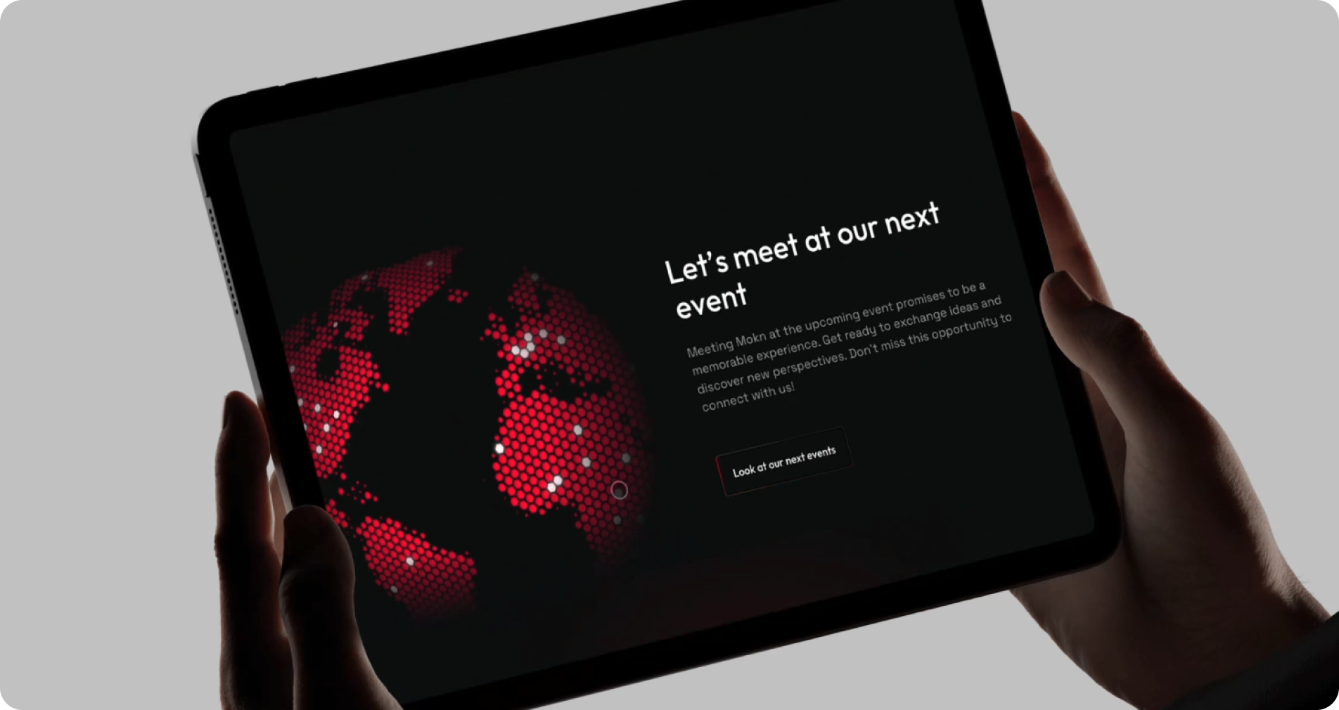 40/60 a conçu une direction artistique puissante, reposant sur une métaphore océanique (bouchon de pêche, sonar, abysses, lanterne). Cette narration visuelle a permis d’incarner la proposition de valeur de Mokn tout en conservant son identité existante. Le site a été refondu avec une double exigence : performance SEO et qualité visuelle, grâce à l’intégration d’assets 3D sur mesure et d’animations immersives. Mokn a ainsi renforcé son image d’expert différenciant, prêt à attaquer le marché international.