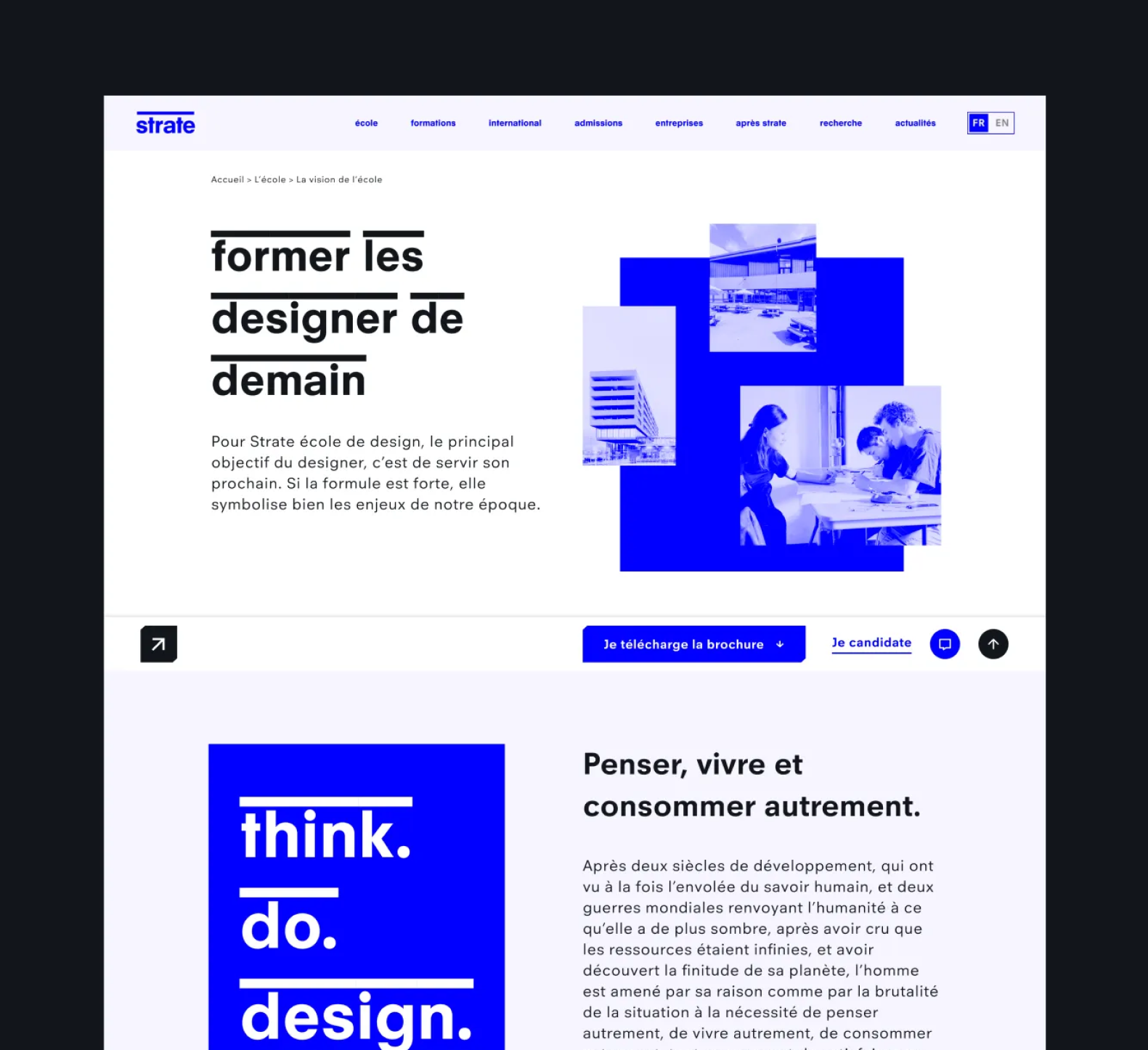 - UI Design : adaptation de la charte de Strate au digital, conception des maquettes finales.