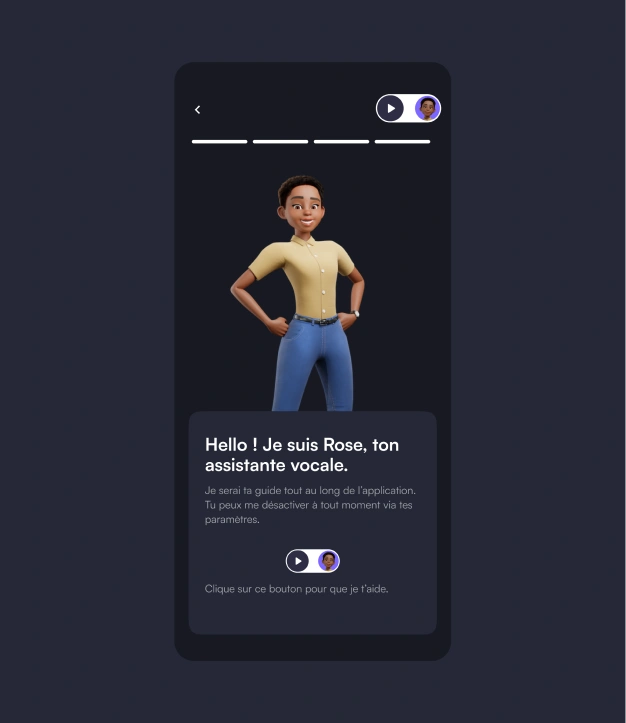 - UX voice : création d’un avatar conversationnel (Yuri) pour guider les personnes analphabètes.